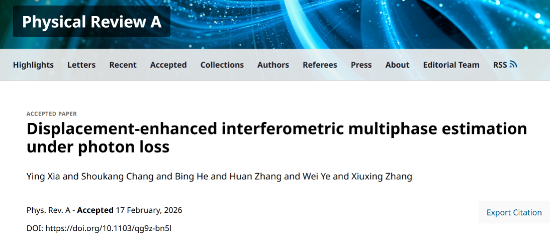 近日公司夏莹博士在量子精密测量研究领域取得重要进展。夏莹博士以第一完成单位、第一作者完成的研究论文《Displacement-enhanced interferometric multiphase estimation under photon loss》,已被国际物理学权威期刊《Physical Review A》正式接收并发表。