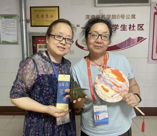 在员工公寓大厅,学子们双手递上精心准备的艾草香囊与漆扇,真诚地说道:“阿姨,这是我们的一点心意,祝您端午安康!”清香四溢的香囊,不仅传递着端午佳节的传统祝福,更承载着同学们对宿管阿姨日常贴心关怀的深深感激。