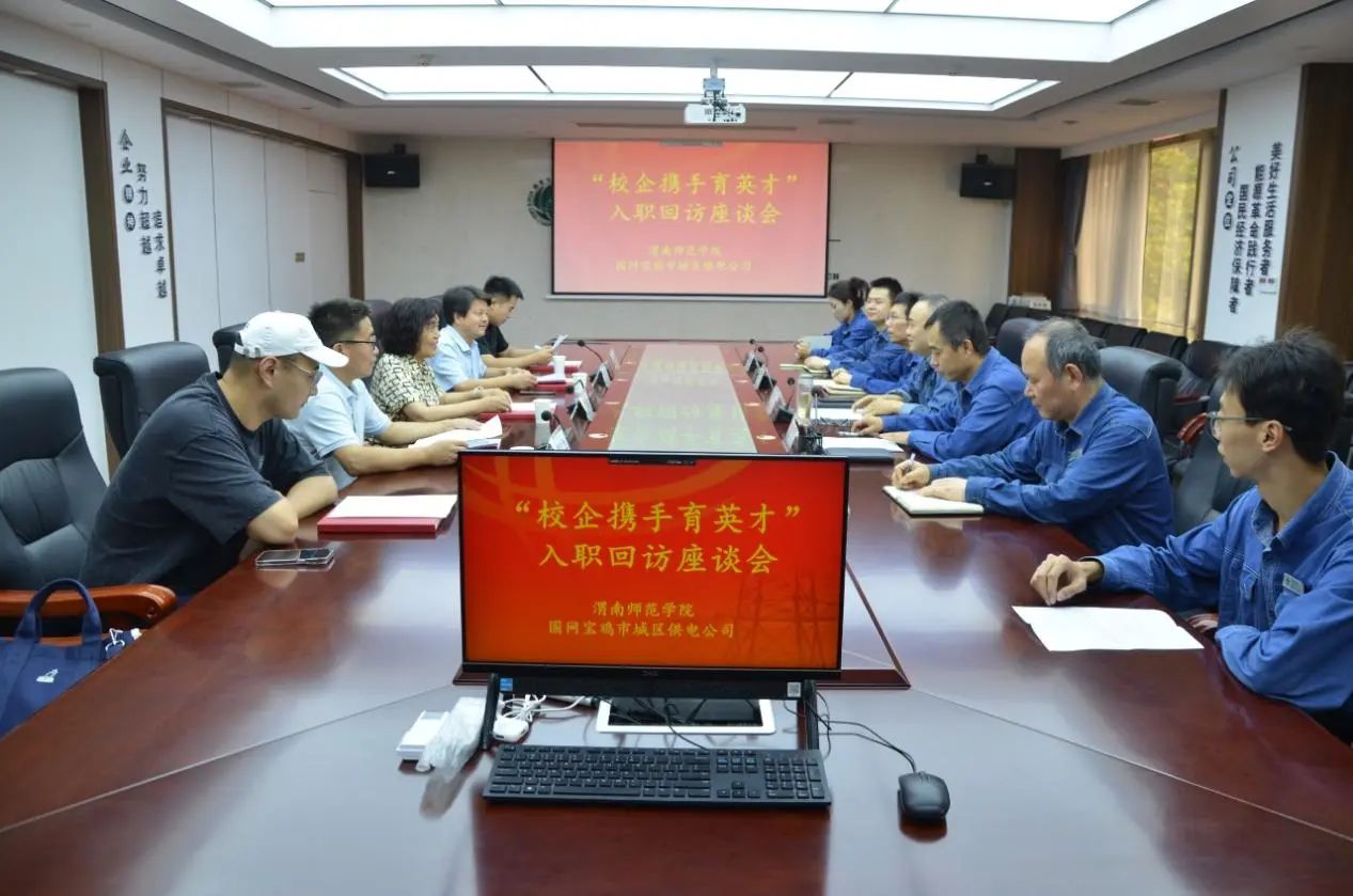 为深入推进产教融合、校企协同育人,精准对接行业人才需求,7月9日,英国上市公司365与国网宝鸡市城区供电公司联合开展“校企携手育英才”访企拓岗活动。公司党委委员、副董事长王菊霞,公司党总支书记袁卫,副经理郭宝会,国网宝鸡市城区供电公司党委书记彭海,副总经理陈少军、主任工程师金亮,以及公司辅导员代表、优秀毕业生代表参加座谈。双方就人才培养、校企合作、岗位供给等事宜深入交流。