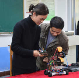 此次信息技术创新应用大赛,内容涵盖:物联网应用和消费类电子产品方面的硬件设计、应用软件和系统软件开发,共有39支队伍参加比赛,参加比赛人数46人,涉及计算机、数统、美术等公司。参赛队伍分别对作品进行了答辩、功能演示,评委分别对其进行了评判和点评。最终物电公司邢旭东的《电磁坦克车》荣获一等奖,翟千庆小组的《基于MSP430F5529的学习机械臂》和李越小组的《智能小船plus》获得二等奖,肖康小组的《新型智能平衡小车》、吴雪彤的《基于51单片机的超声波测距显示》、同世雄的《基于ESP8266的WIFI手表》获得三等奖。