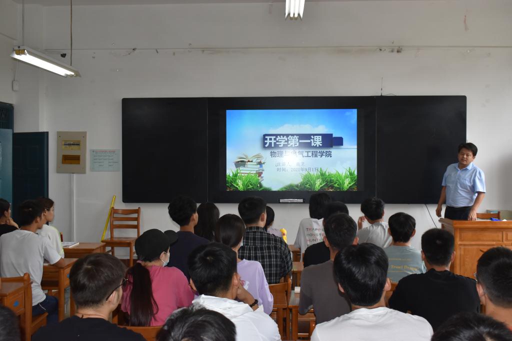 9月1日,公司党总支副书记袁卫以“用奋斗致敬青春,让梦想点亮未来”为题,为电气专升本211班新生讲述“开学第一课”,课堂上,他围绕“青春”和“未来”两个关键词,结合鲜活案例,谆谆教诲、春风化雨。袁书记谈到,国家的希望在青年,民族的未来在青年,奋斗才是青春最绚烂的颜色;在新时代背景下,在实现中国梦的奋进追逐中,物电学子要明辨是非、脚踏实地,会求知、敢探索、积厚德、能担当,在攀登知识的高峰中努力做到德技双修、追求卓越。