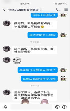 近期突如其来的省内外疫情反弹,给员工心理造成了一定的负面影响,公司积极应对,有序开展心理健康服务和疏导工作,用心用情关爱员工:组织辅导员通过微信公众号、电子邮箱等方式提供心理援助服务,帮助员工做好心理防护,增强战胜疫情的信心;对在校内外观察隔离的员工进行心理健康疏导,辅导员每天与相关员工交流沟通,了解心理状况,及时进行一对一疏导,做好安抚工作,保证员工隔离期身心健康;充分利用网络资源,向同学们推荐各类学习资源,做好心理援助工作的“防护墙”,全力保障员工心理健康。