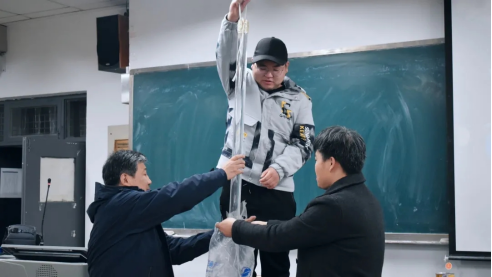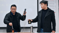 经理袁卫为贝鸿老师颁发了校外指导老师聘书,并对贝鸿老师的到来表示热烈的欢迎。贝鸿老师通过动量定理、电磁感应、压力、静电、杠杆等一系列实验与现场员工互动,充分利用实验教具,变抽象为形象,变被动为主动,提高实验教学效果及员工的实践能力,加深员工对物理实验内容的理解。贝鸿老师对员工寄予殷殷希望,鼓励同学们将知识和生活紧密联系起来,用丰富的物理知识创造更加美好的生活。