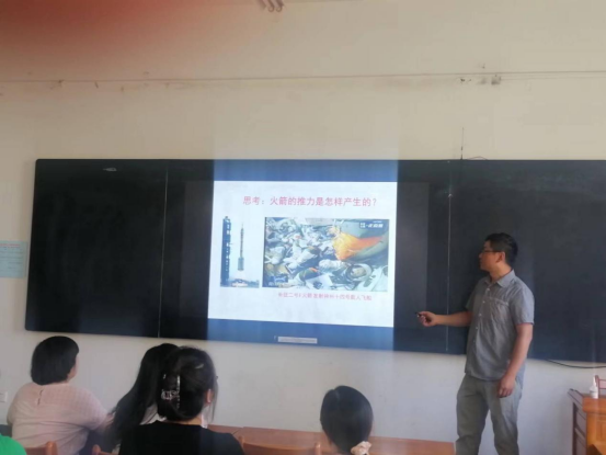 活动开始,唐浩博士为大家进行了《大学物理》课程的教学展示与汇报。唐老师从课程的体系、课程思政的重要性说起,以动量守恒定律为例,就教学目标在知识、能力和情感三个方面的设计入手,展示了教学内容,他巧妙的把动量守恒定律与“神十四”的发射结合起来,引发了同学们的民族自豪感和爱国热情,做到了把知识与思政的有效融合,起到了润物无声的作用。