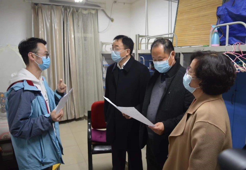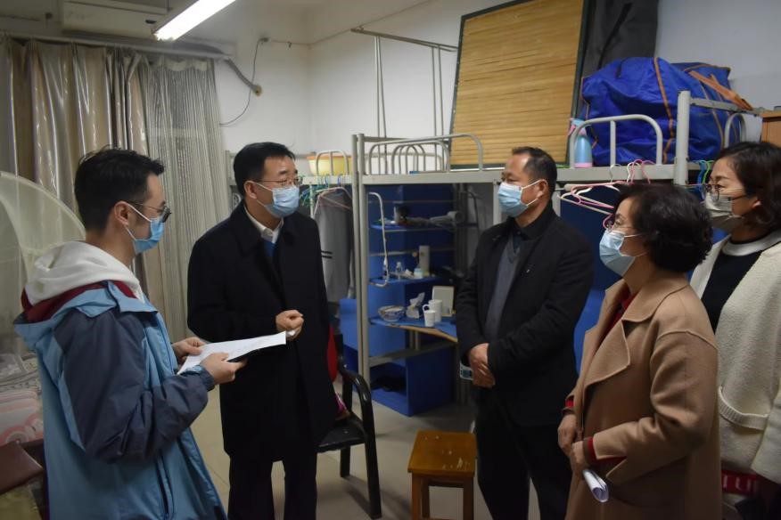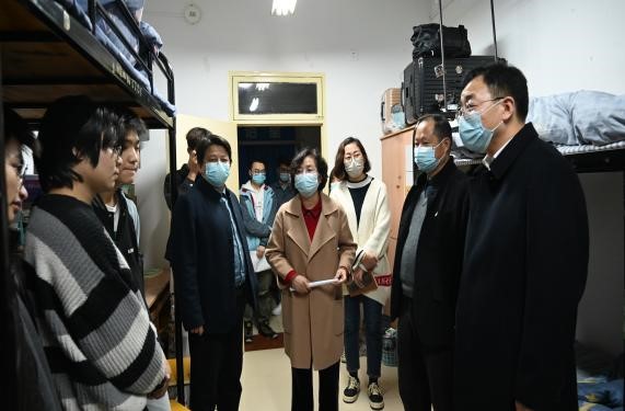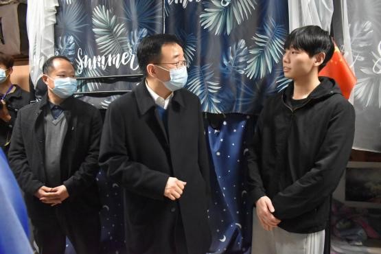 张守华一行亲切慰问公寓管理人员和值班辅导员,了解公寓疫情防控各项工作进展情况。
