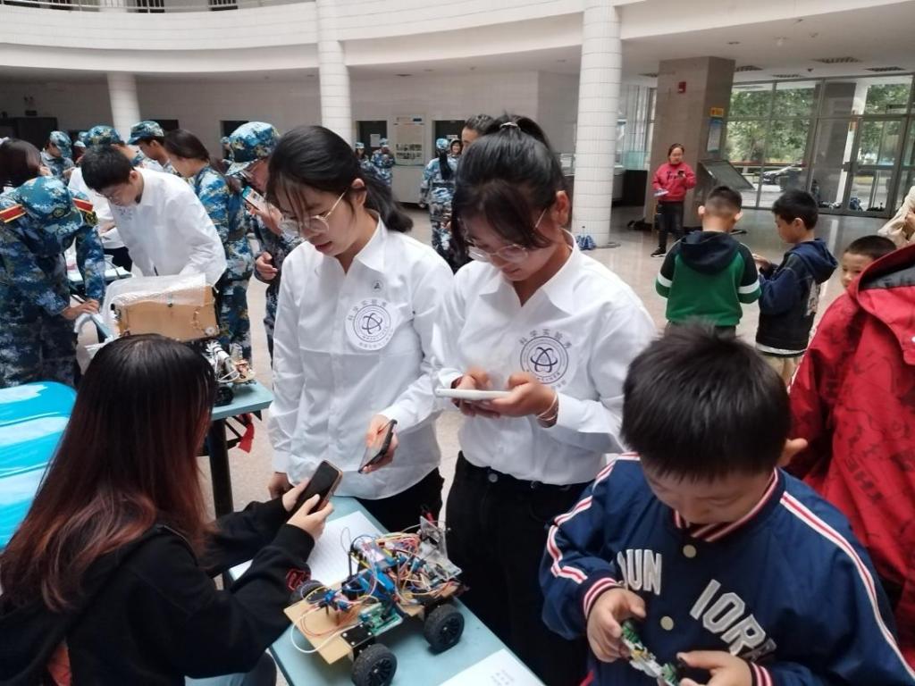 活动过程中,志愿者们展示了二十多个生活中的趣味物理小实验:热声发动机、波妞热管、自动循迹小车、回形针悬浮、插不破的气球、发电机等。这些实验在生活中容易复现,引起了孩子的热情参与,激发了孩子们的好奇心。