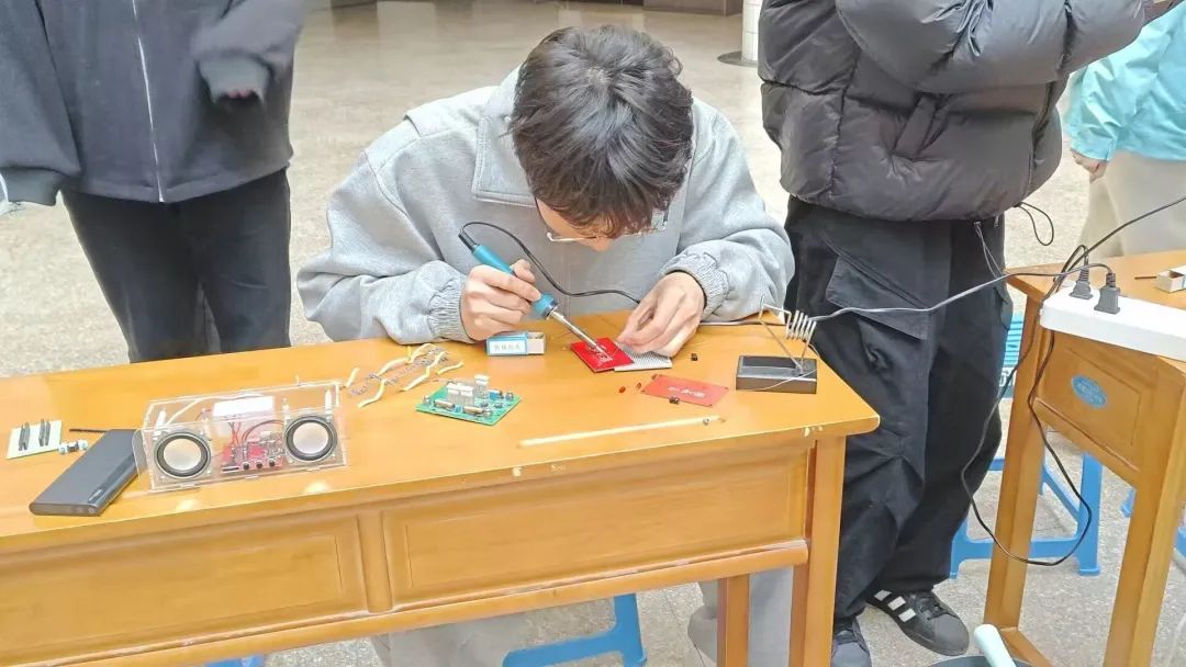 现场还设置了学术竞赛作品展演区和焊接体验区。作品展演区陈列了公司近两年的获奖作品,充分展示了同学们在相关领域的深度探索与创新成果。焊接体验区为现场观众提供了亲手实践的机会,让他们在感受焊接工艺的同时,加深了对硬件制作环节的认知,丰富了活动的内涵性与趣味性。