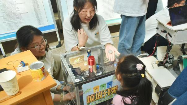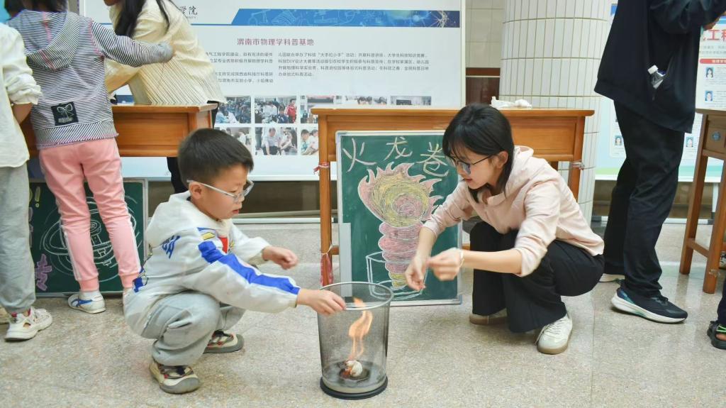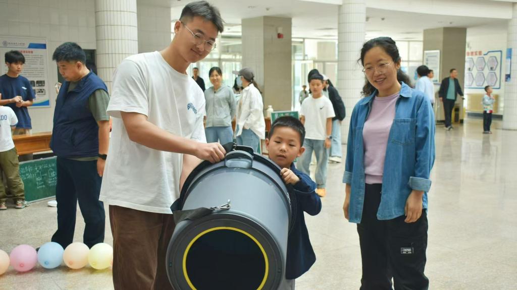 空气大炮前,孩子们瞪大好奇的双眼,当看到一阵“狂风”突然袭来,吹散层层搭叠起来的纸杯时,惊呼声与欢呼声此起彼伏。在电磁小火车的展示区,小火车在导轨上呼啸而过,仿佛拥有魔法般的力量。消失的你实验更是充满了神秘色彩,当人走进特定装置后瞬间“隐身”,引得周围观众啧啧称奇。会倒退的小车也收获了超高人气,推动一下,小车却反向行驶,违背直觉的运动方式引发了大家的深思。无敌风火轮前更是热闹非凡,孩子们亲手参与制作简易装置,在志愿者的引导下,看着风火轮飞速转动,感受气流与压力差共同作用下的动力奇观,玩得不亦乐乎。