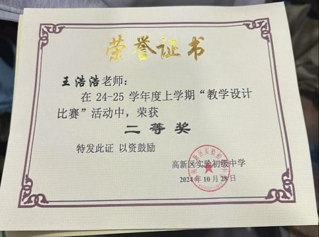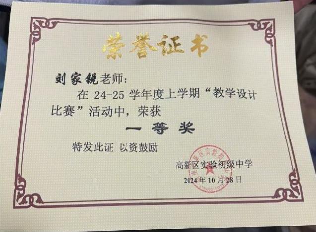 公司6位实习生踊跃的参加高新区实验初级中学实习生教案书写大赛,并获奖。